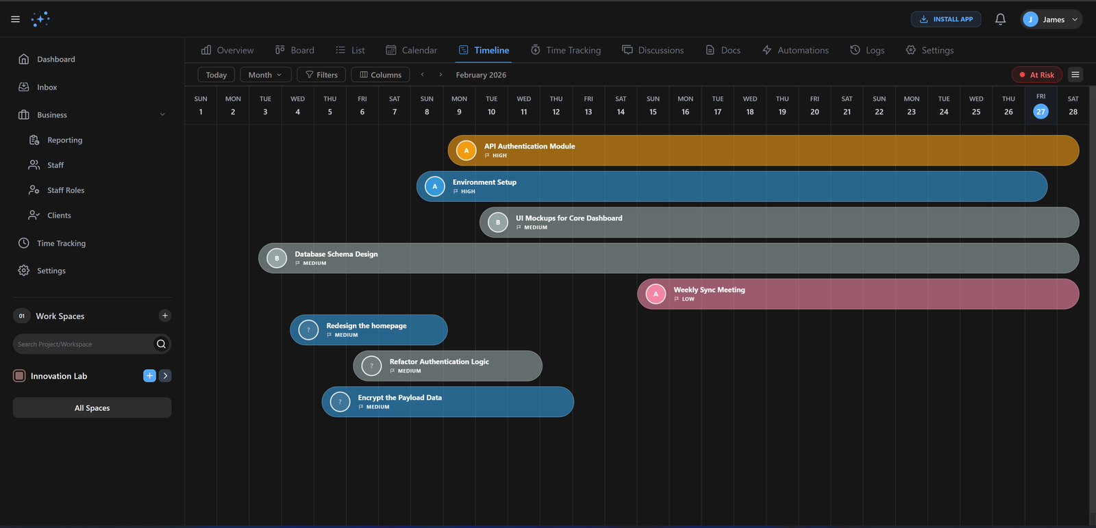 When complex projects have moving parts, you need more than a list. Our Timeline View gives you a cinematic look at your project roadmap.